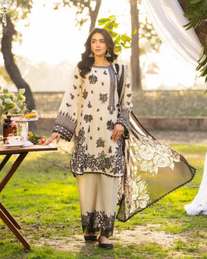 Dupatta: Printed khaadi net dupatta adorned with lace, adding light texture and soft movement to the outfit.