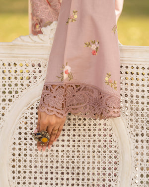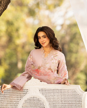Dupatta: Printed khaadi net dupatta adorned with lace, adding light texture and soft movement to the outfit.