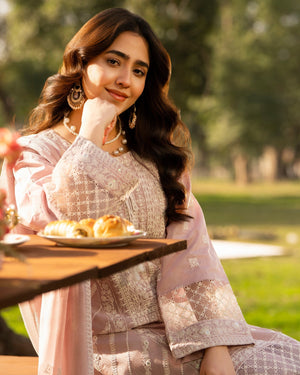 Dupatta: Crinkle chiffon dupatta enhanced with delicate embroidery, adding lightness and flow to the look.