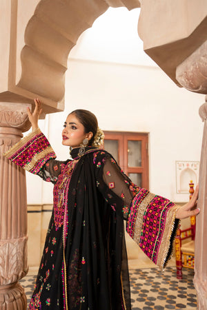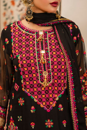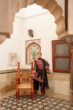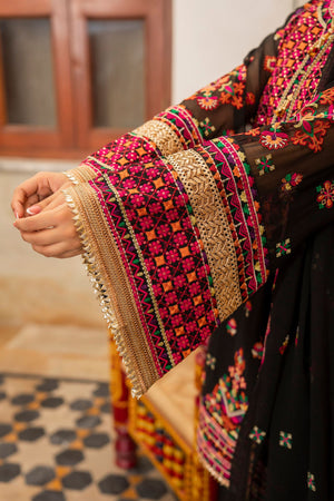 Crinkle Chiffon Short Shirt with Sindhi\Balochi Embroidery and Multi