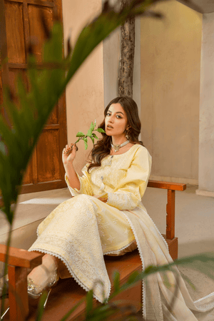 Long Shirt with White Thread Chikankari Shirt with Shuttle Lace