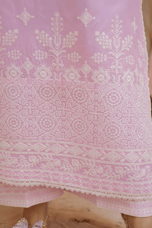 Long Shirt with White Thread Chikankari Shirt with Shuttle Lace