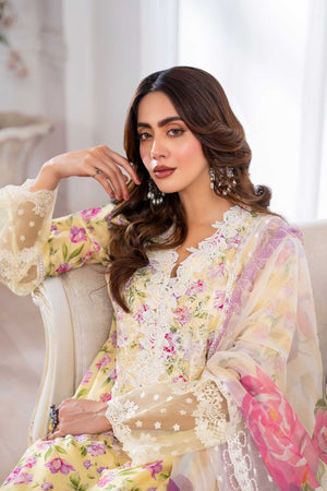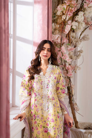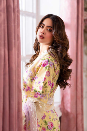 Printed Shirt with Neckline and Cutwork Patch on Border and Shuttle Lace Work