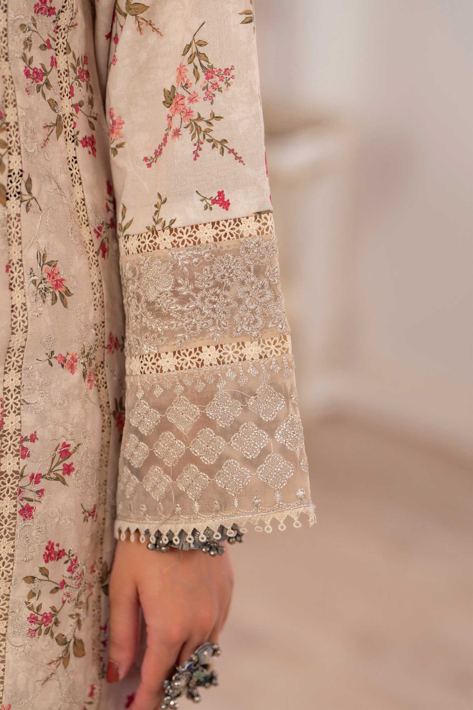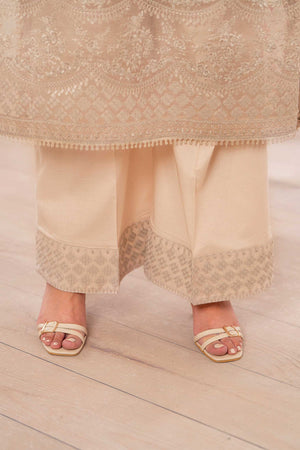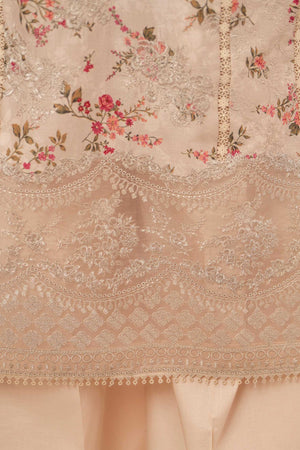 Chikankari Shirt with Embroidered Organza Patch on Border and Lace