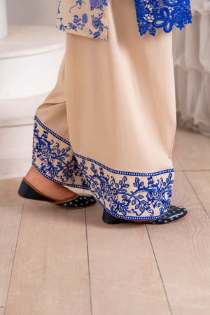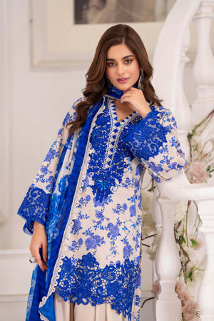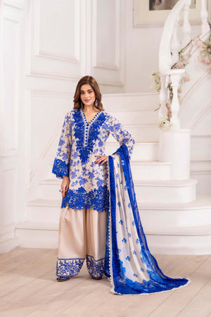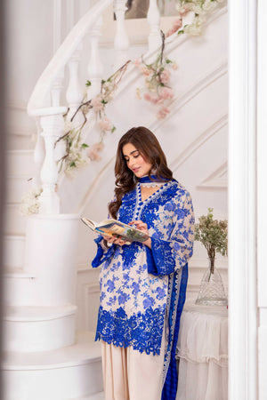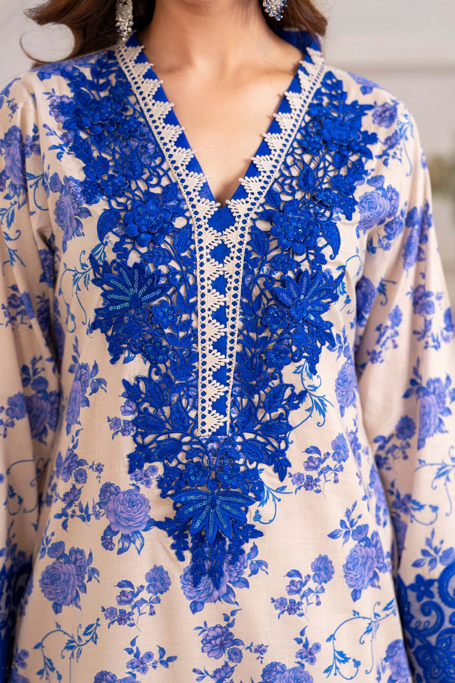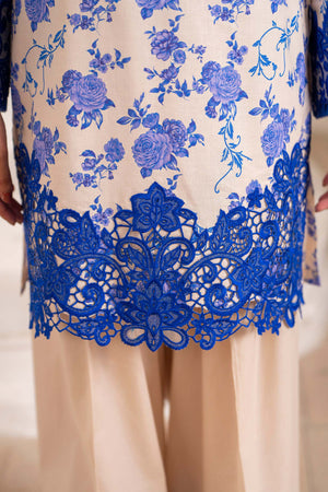 Printed Shirt with Blue Cutwork 3D Flower Work