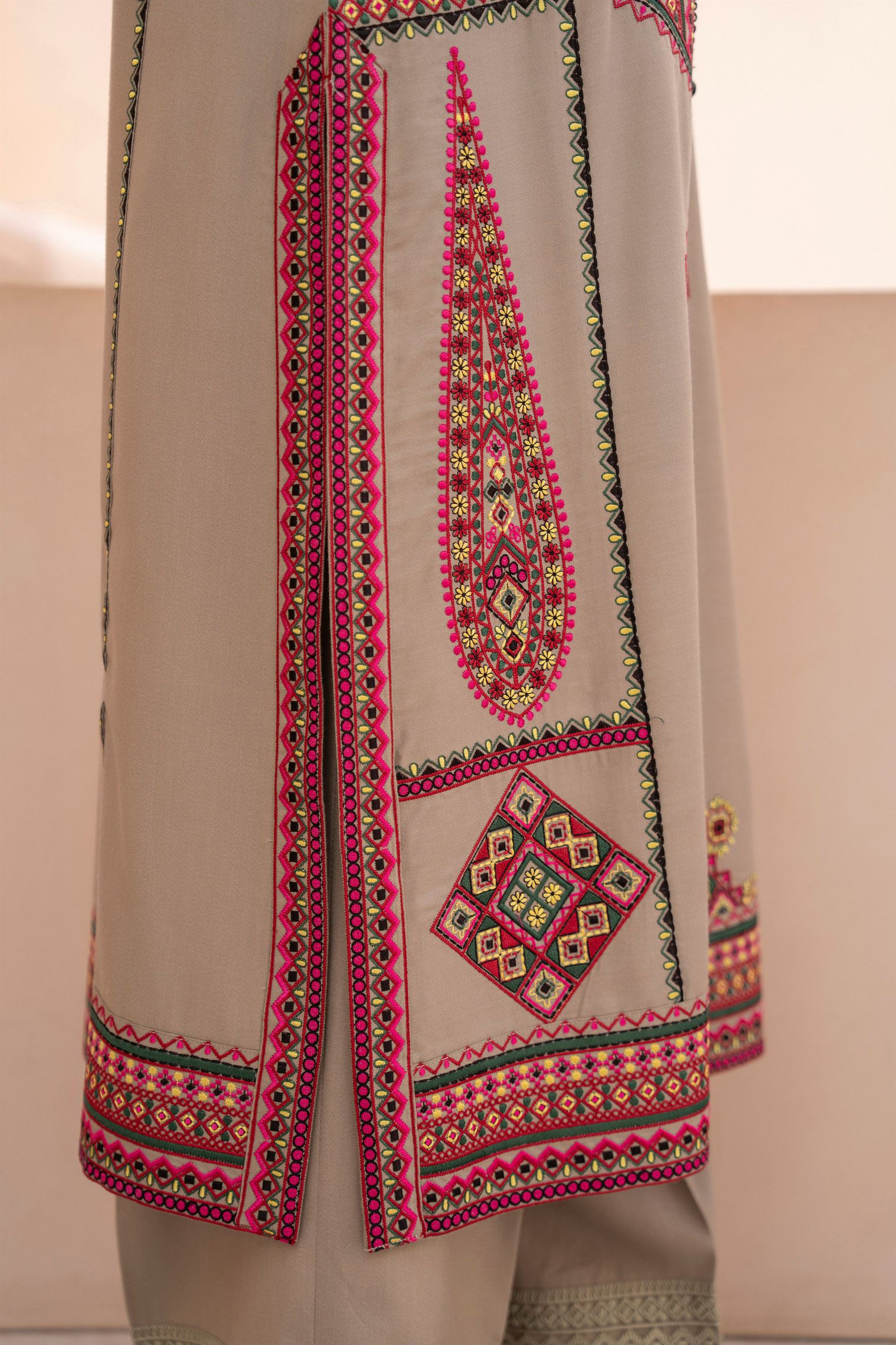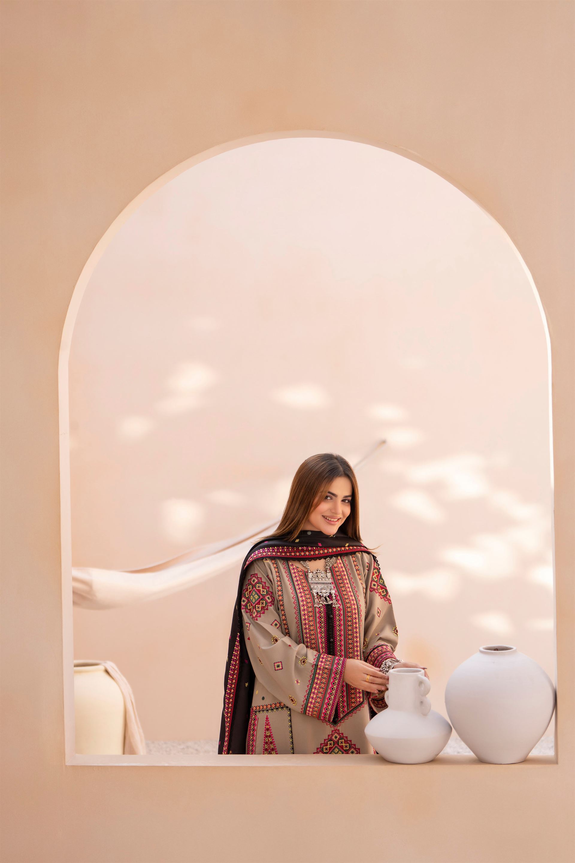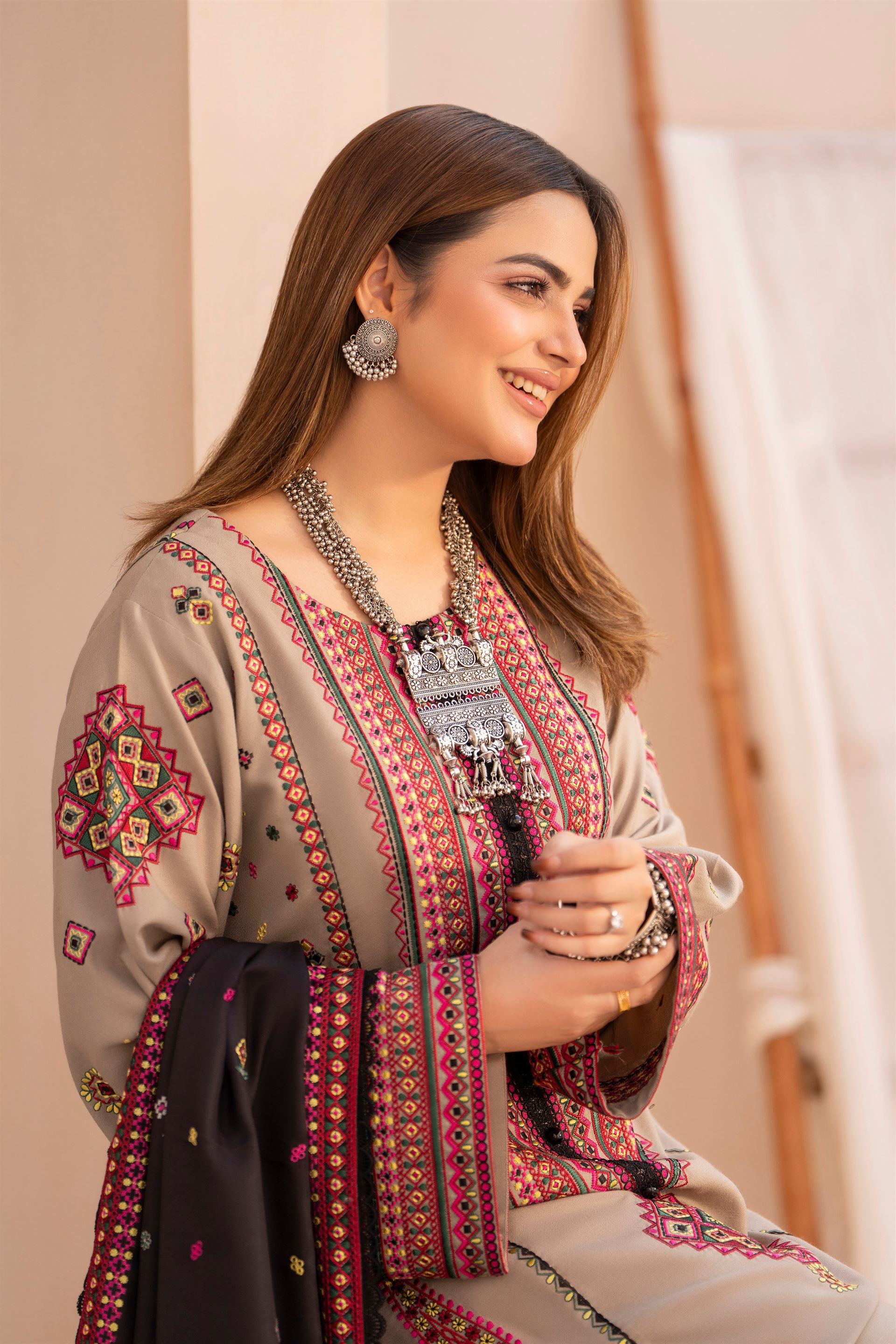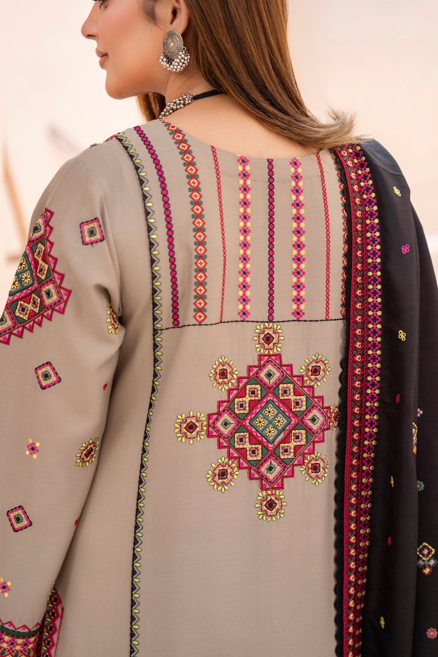 Discover the perfect look. Its soft Dhanak feel, elegant thread embroidery, and refined detailing make it an ideal winter outfit for casual gatherings, dawat wear, and everyday comfort. Designed for ease and style, it brings a polished charm to your wardrobe.