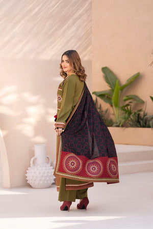 Discover the perfect look. Its soft Dhanak feel, elegant thread embroidery, and refined detailing make it an ideal winter outfit for casual gatherings, dawat wear, and everyday comfort. Designed for ease and style, it brings a polished charm to your wardrobe.