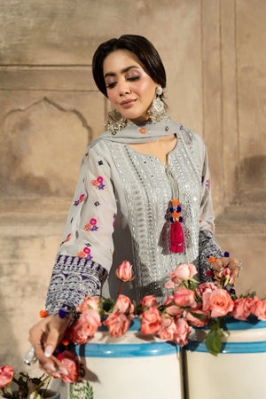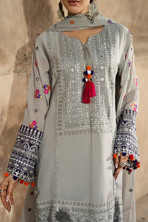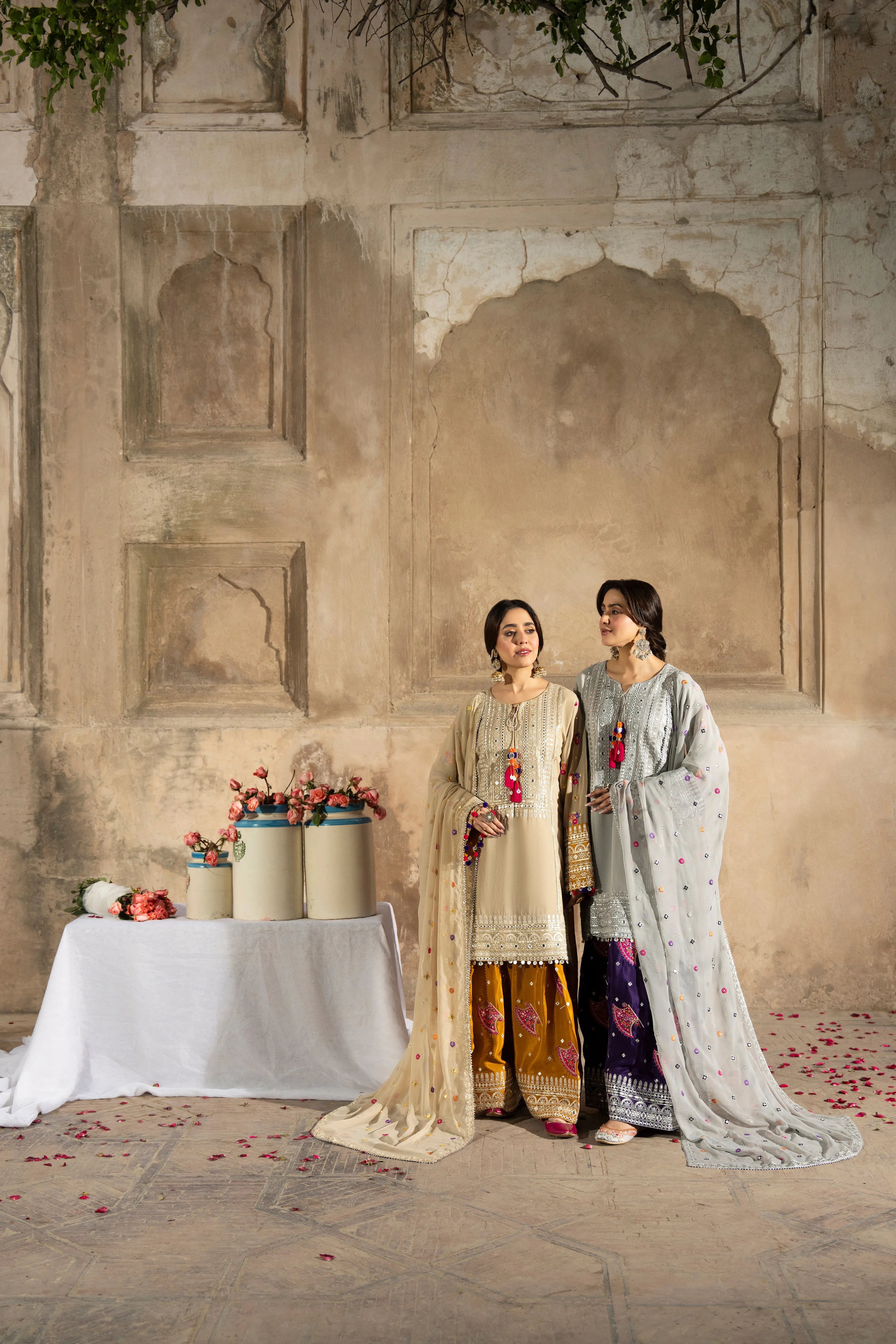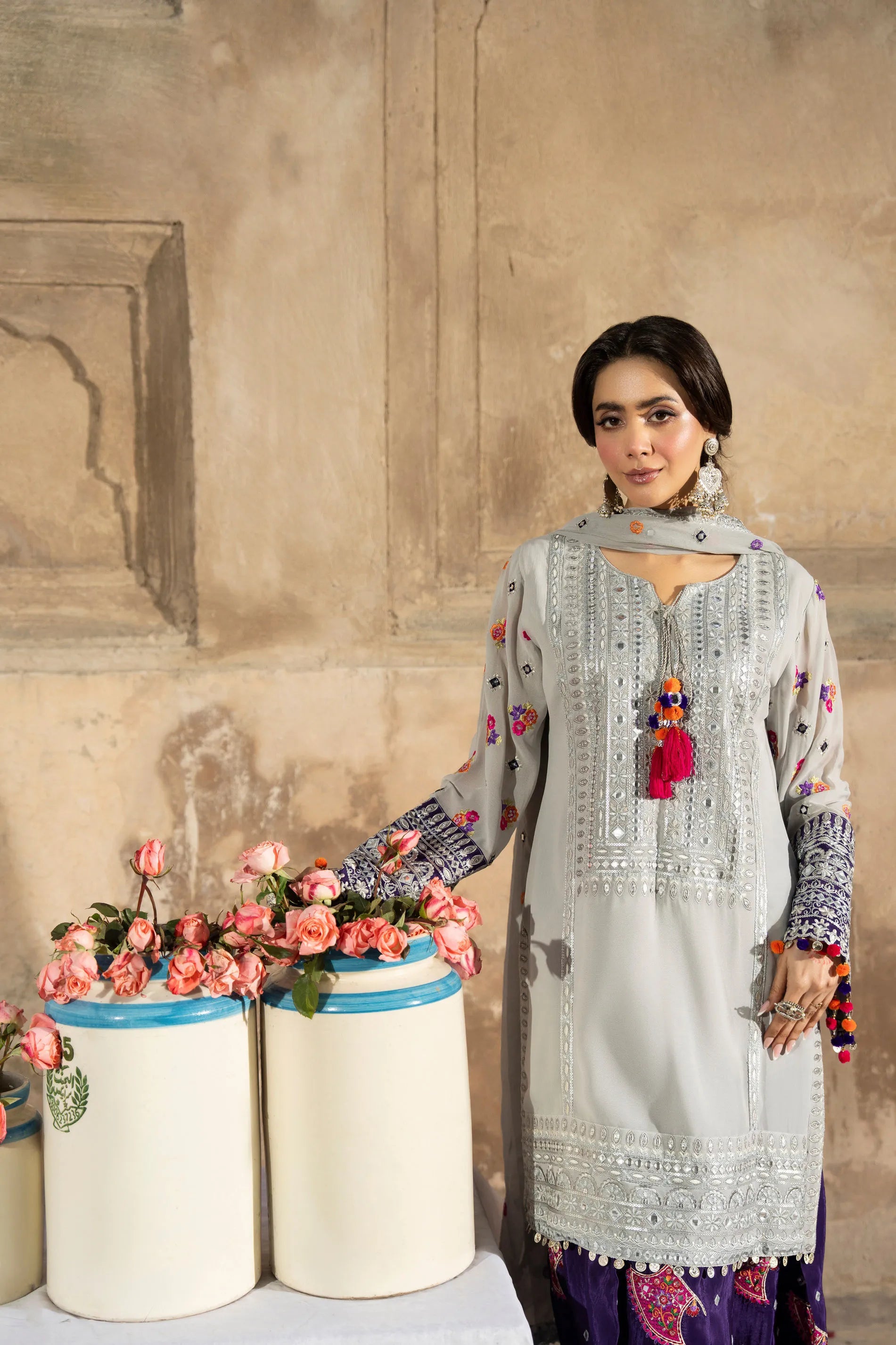 Georgette Shirt with Panni, Sequins, Tilla and Thread work Embroidery ( Tussels on