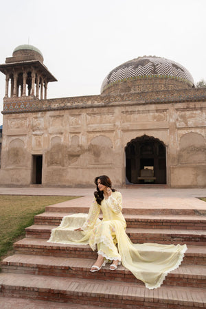 Georgette Long Shirt with Cutwork Patch on Neckline and Chikankari Sleeves