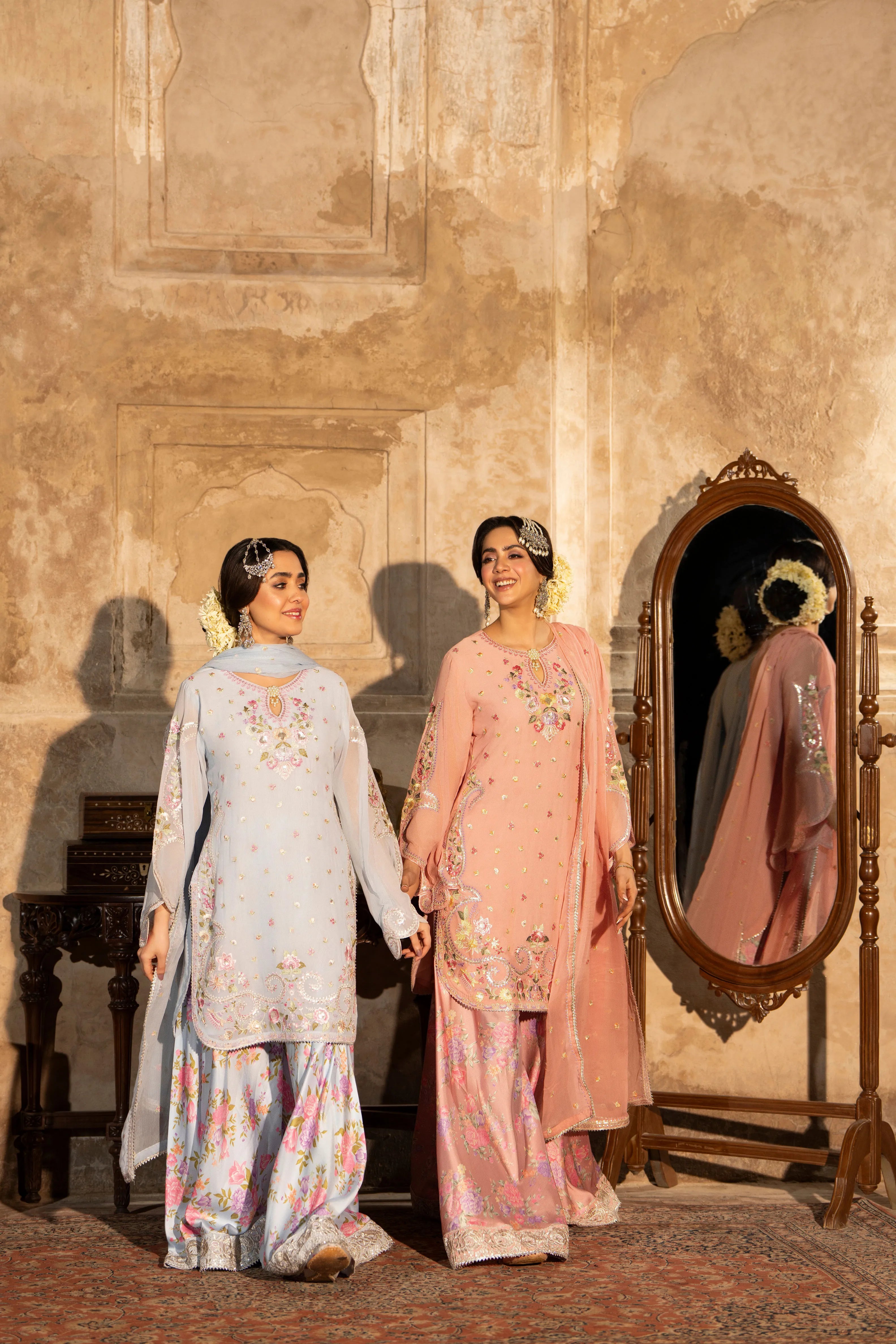 Georgette Shirt with Thread work Embroidery and Cut work Sleeves