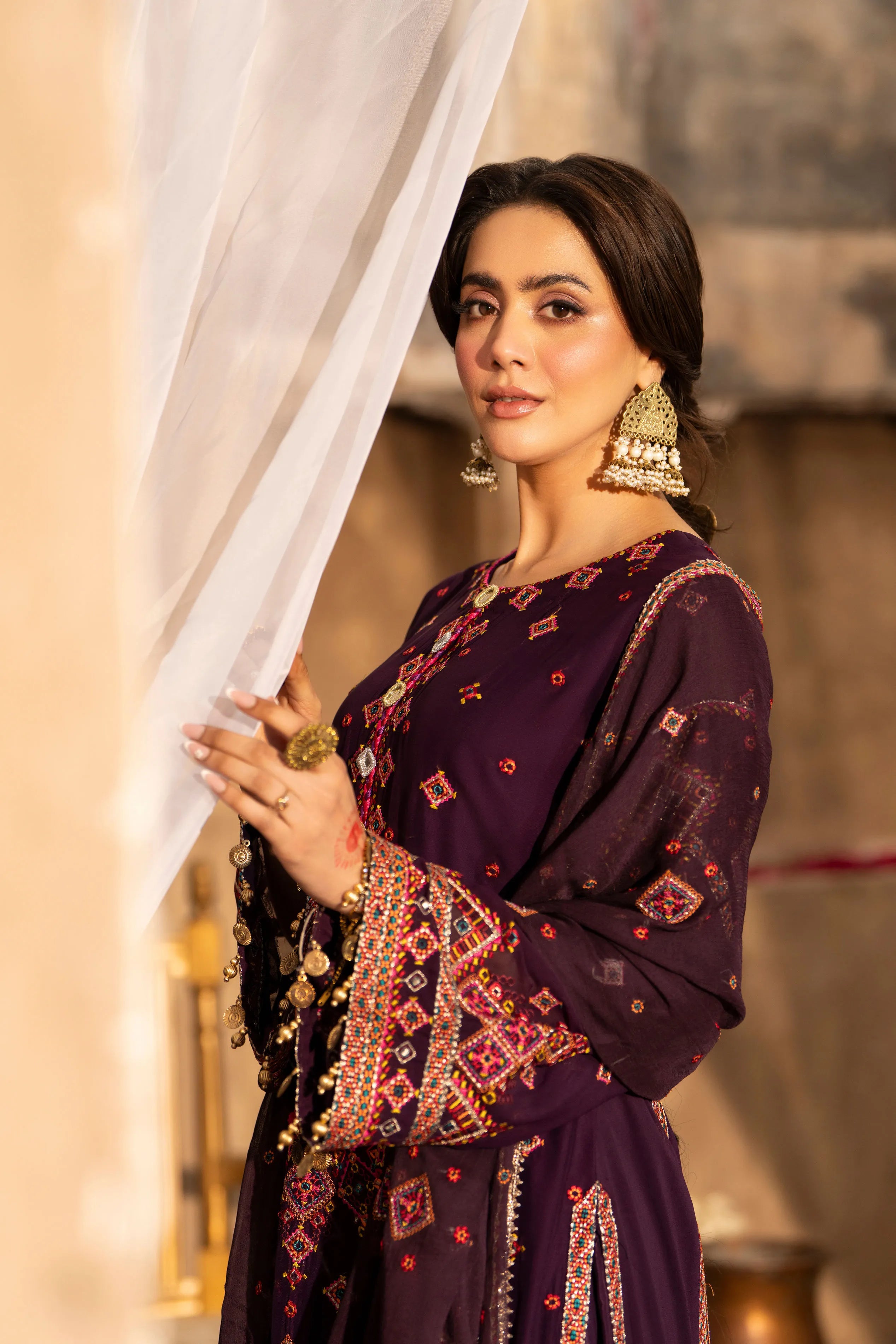 Georgette Short Shirt with Thread work Embroidery and Tussels on Sleeves and Border