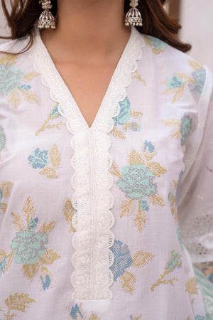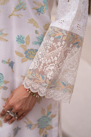 Shirt with Cross-stitch Multi Embroidery and Lace on Sleeves with