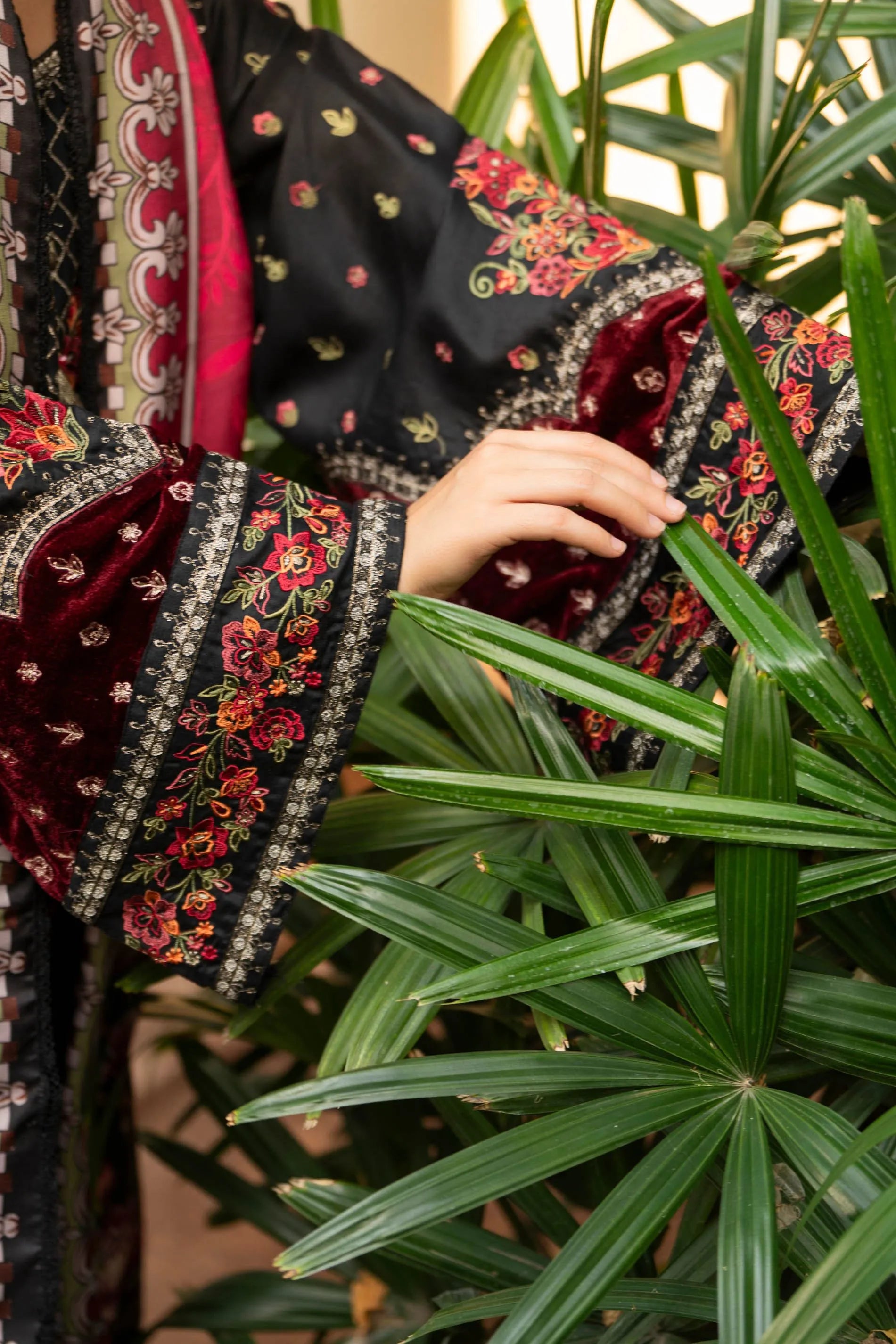 Kotrai Long Shirt with Multi Thread Work Embroidery and Velvet Patch on Sleeves