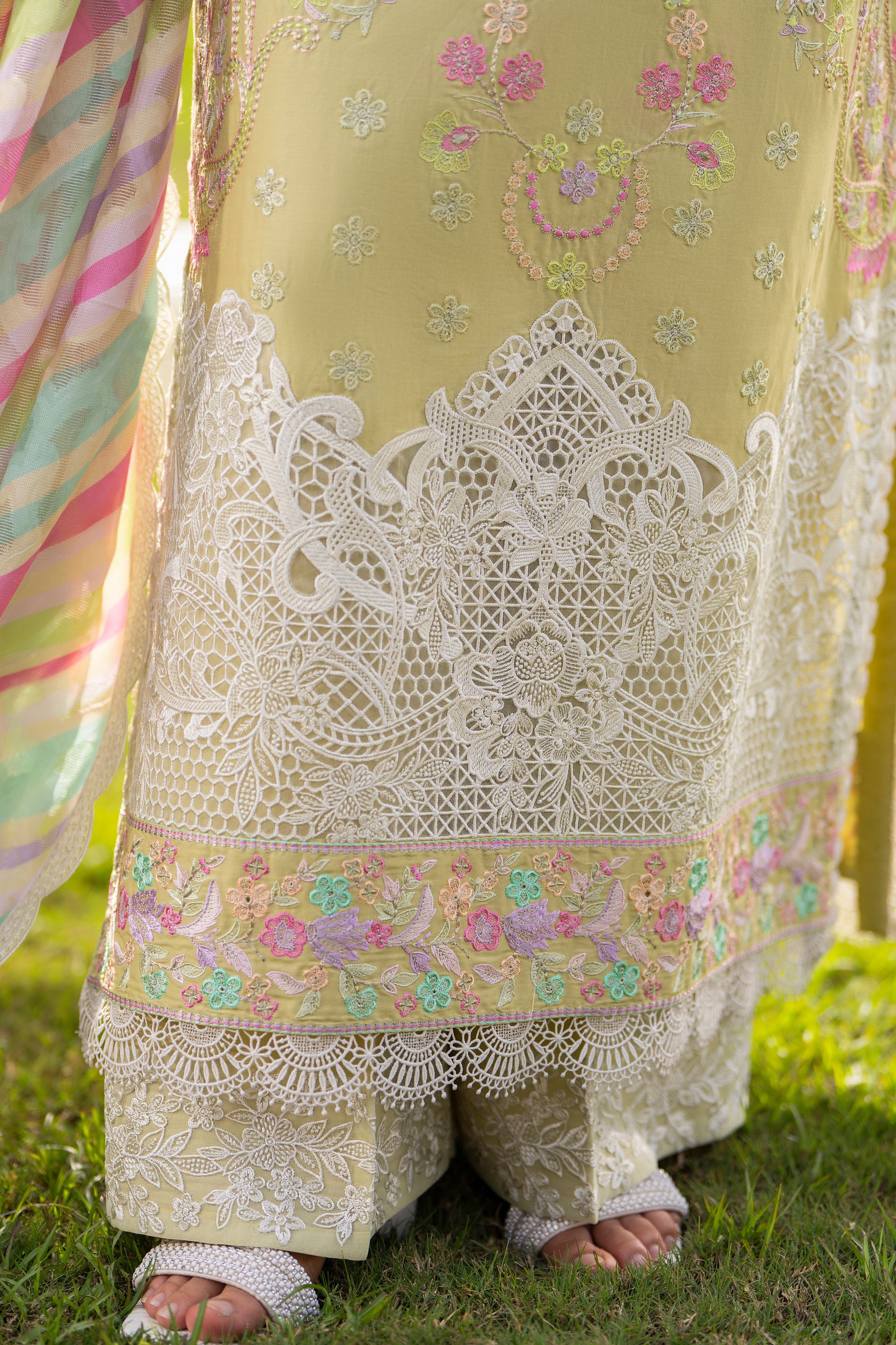 Trouser with Embroidery and Cut work and Lace