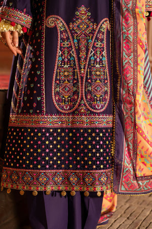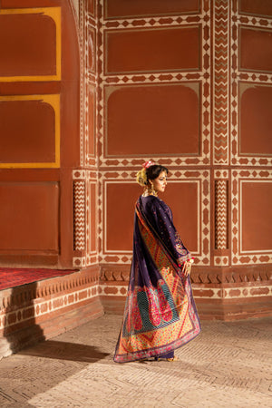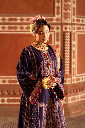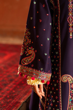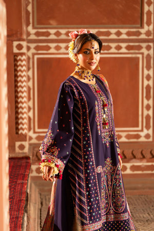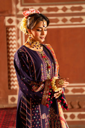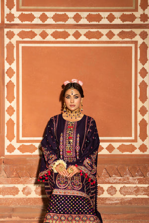 Long Shirt with Multi Thread work and Tilla work in Kashmiri Stitch and 3 patches on Border