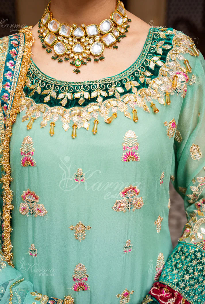 WORK : Embelishment with Gota & Stone work (Welvet Borders)