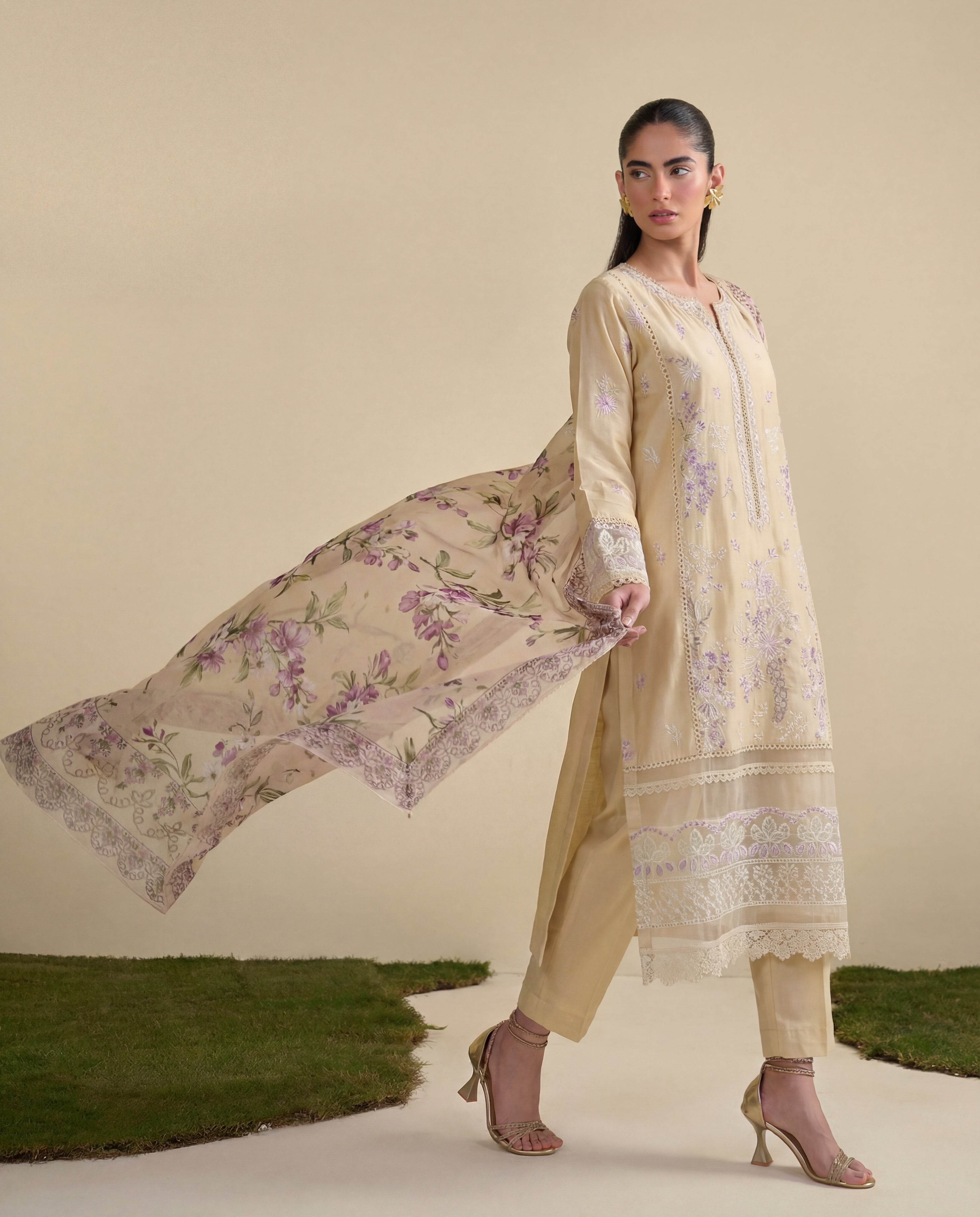 Stay cool and effortlessly stylish this summer with our beautifully designed 3-piece lawn suit. Crafted from lightweight, breathable lawn fabric, this ensemble includes a finely stitched shirt, comfortable matching trousers, and a soft, airy dupatta.