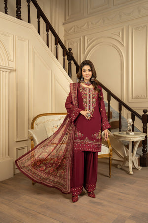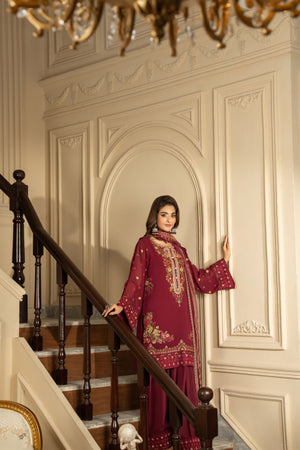 Georgette Chiffon Shirt with CrossStitch Embroidery and Metal