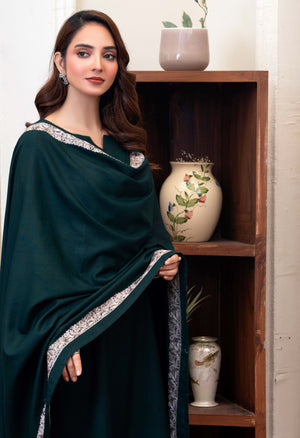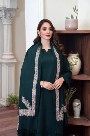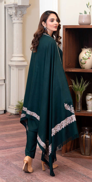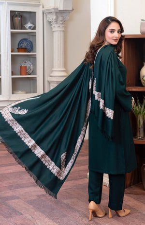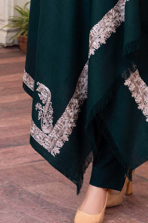 Work technique: Thread work embroidery on shawl