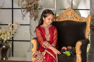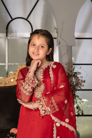 Additional Description: 1-Behold the exquisite beauty of this net sequin embroidered shirt, adorned with handcrafted adda work and delicate pearl embellishments 2-Paired with a luxurious silk ghararah featuring intricate lace details 3-Topped off with a stunning organza dupatta also adorned with delicate lace accents.
