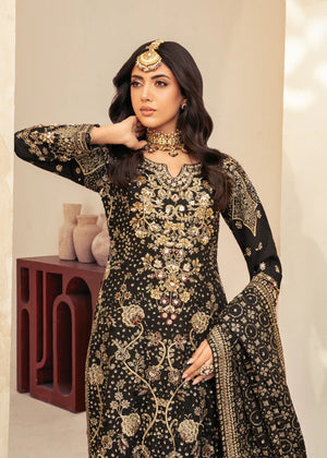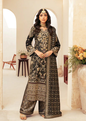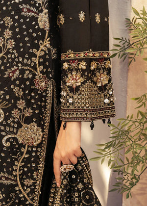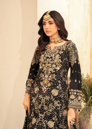 Additional Description: "1-Introducing the stunning Khaadi fabric Black Shirt Adorned with intricate glitter sequins, delicate tilla thread naqshi, and shimmering pearls 2-Khaadi fabric Dupatta, enriched with an exquisite array of sequins and embroidery 3-We present the Jamawar Trouser embellished with sequins and laces"