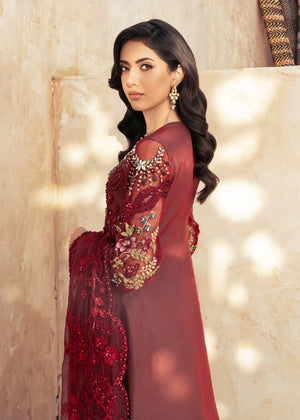 Additional Description: "1-stunning organza panel shirt compsed with shimmering sequins, delicate multi thread work, and lustrous stones and pearls with naqshi detailing 2- chiffon dupatta beautifully embellished with sparkling stones, sequins, and matching pearls 3-Enchanting viscose lehenga with its playful frills" *SLEEVES LINING IS ATTACHED*