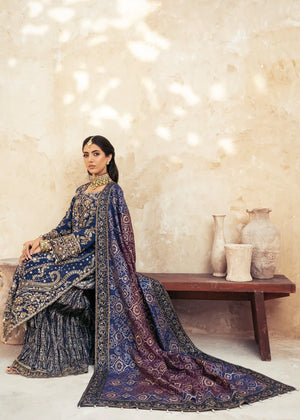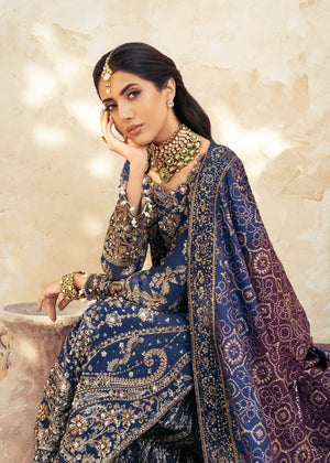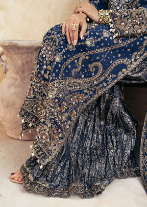 Additional Description: "1-This exquisite ensemble features a khaadi fabric shirt adorned with intricate embroidery, dabka, glitter, sequins, pearls, and handcrafted adda work 2-The embroidered dupatta is crafted with sequins, tilla thread, and jamawar piping. 3-Completing the look is the jamawar shararah embellished with sequins and embroidery" 4-Sleeves linning is attached