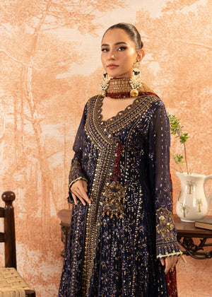 Additional Description: 1-Behold the exquisite chiffon sequin Angrakha style maxi, adorned with intricate handcrafted work and beautiful tassels 2-viscose sequin embroidered dupatta 3-stunning crussh shararah. This ensemble exudes elegance and sophistication