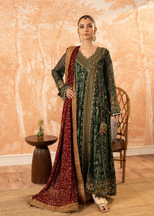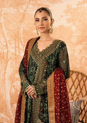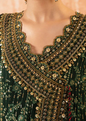 Additional Description: 1-Behold the exquisite chiffon sequin Angrakha style maxi, adorned with intricate handcrafted work and beautiful tassels 2-viscose sequin embroidered dupatta 3-stunning crussh shararah. This ensemble exudes elegance and sophistication