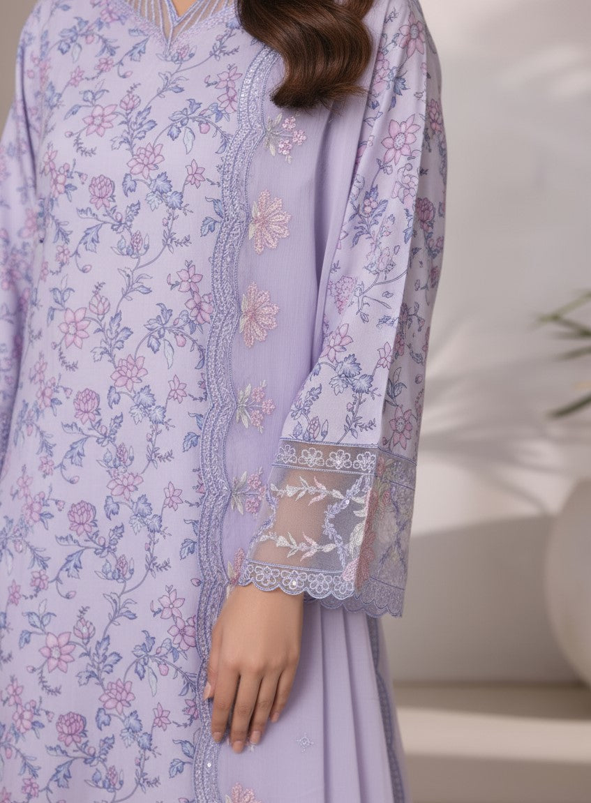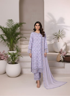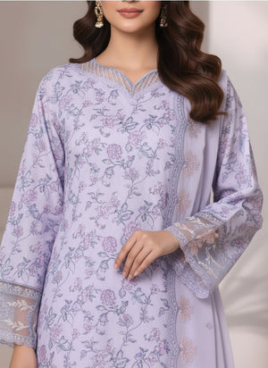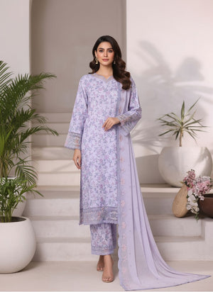 Elegant 3-piece viscose suit featuring a soft, breathable fabric paired with an embroidered chiffon dupatta — perfect for festive and semi-formal occasions.