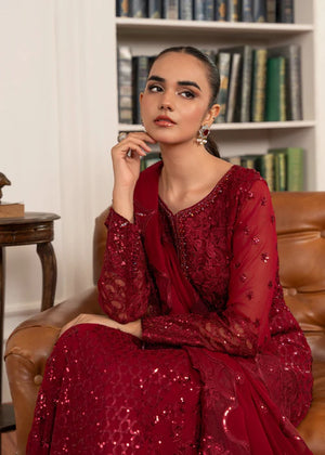 Additional Description: 1-Behold the exquisite beauty of the chiffon sequin embroidered maxi, adorned with intricate handcrafted work on the neckline and delicate pearls embellishment 2-The chiffon sequin embroidered dupatta adds a touch of glamour and grace 3-viscose plazo completes the ensemble with its effortless style and comfort.