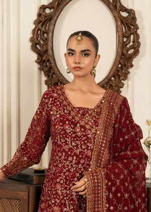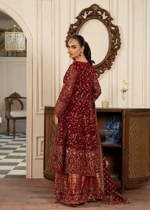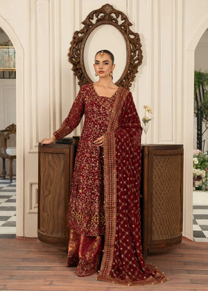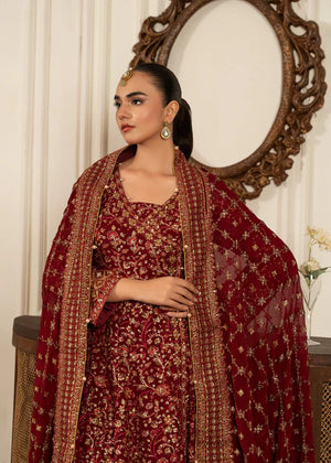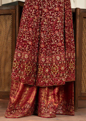 Additional Description: 1-This exquisite angrakha style frock is crafted from chiffon and adorned with sequins, intricate handcrafted adda work, and lustrous pearls 2-The chiffon dupatta is also embellished with sequins and pearls, adding a touch of elegance to the ensemble. 3-Completing the look is a jamawar shararah featuring sequin embroidery panels