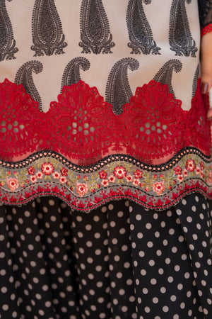 Printed Georgette Shirt with Thread Work Embroidery and Cut Work on Border and Sleeves