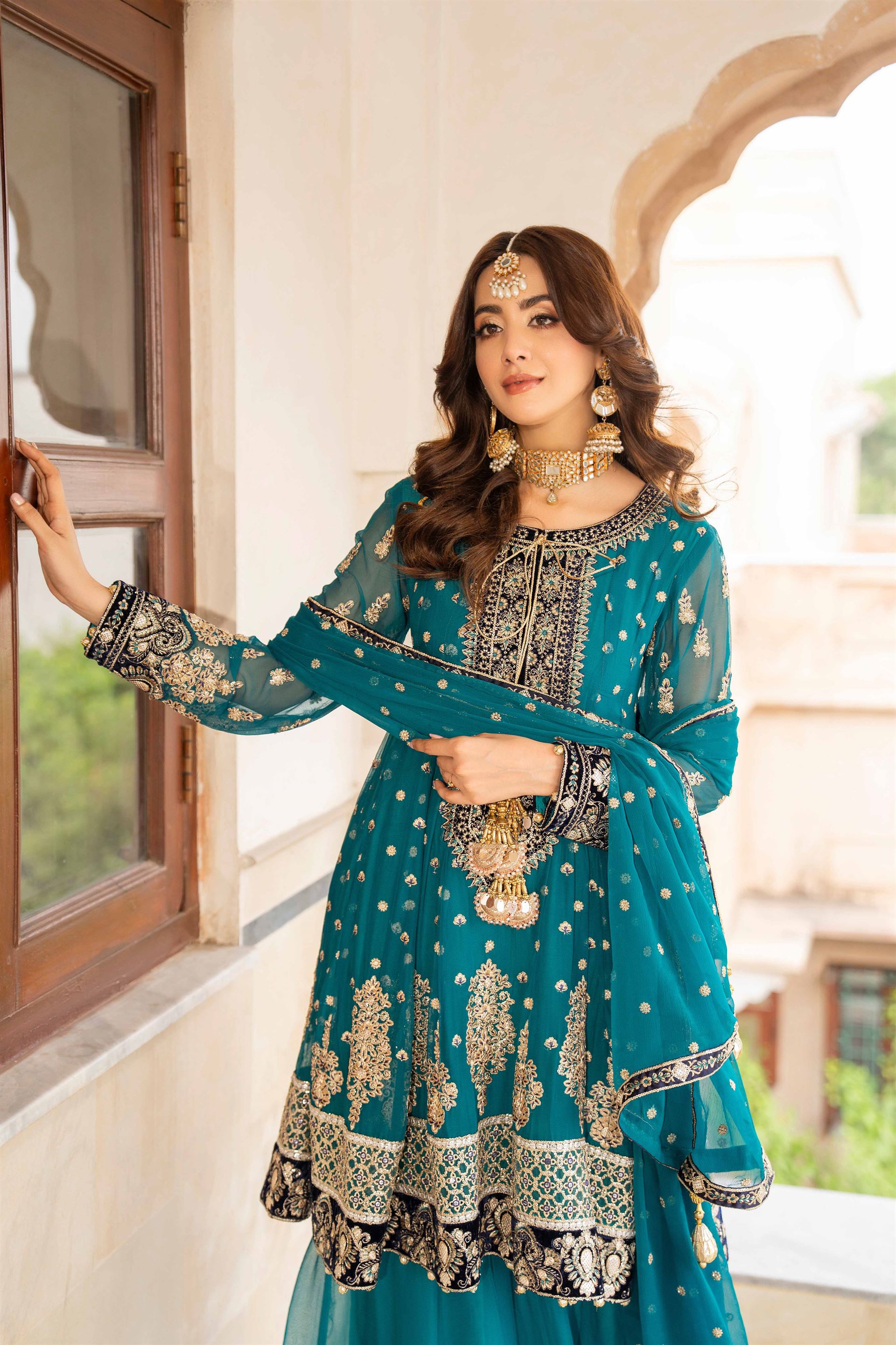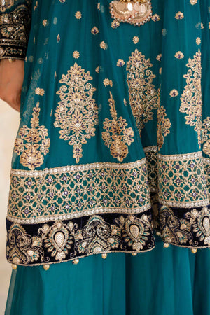 Crinkle Chiffon Kali Frock with Tilla, Panni and Sequence Work and Embroidery and