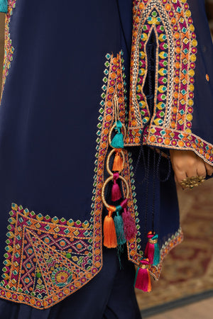 Georgette Chiffon Embroidered Shirt with Tussels on Chalk and