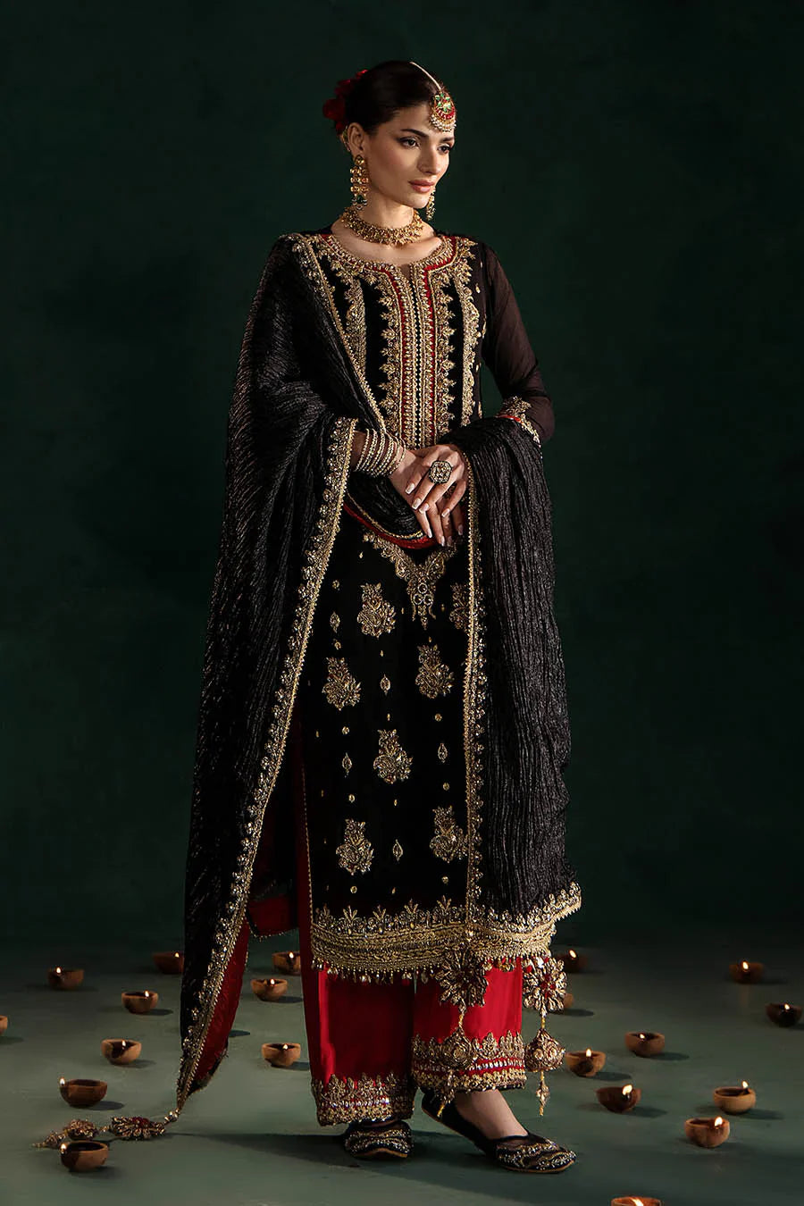 Bottoms: Silk (hand-embroidered Kora, dabka, etc.)