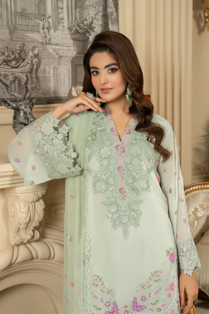 Embroidered Georgette Shirt with Cross Stitch and Applique Work