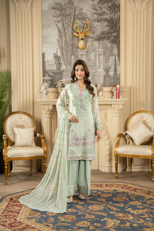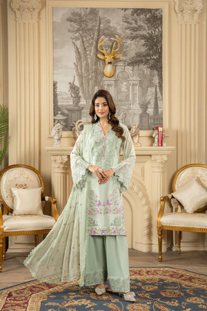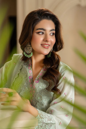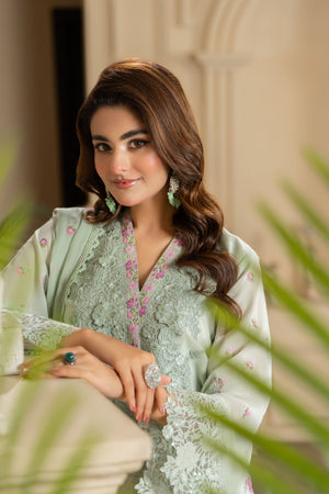 Crinkle Chiffon Dupatta with Cross Stitch Embroidery Lace all over