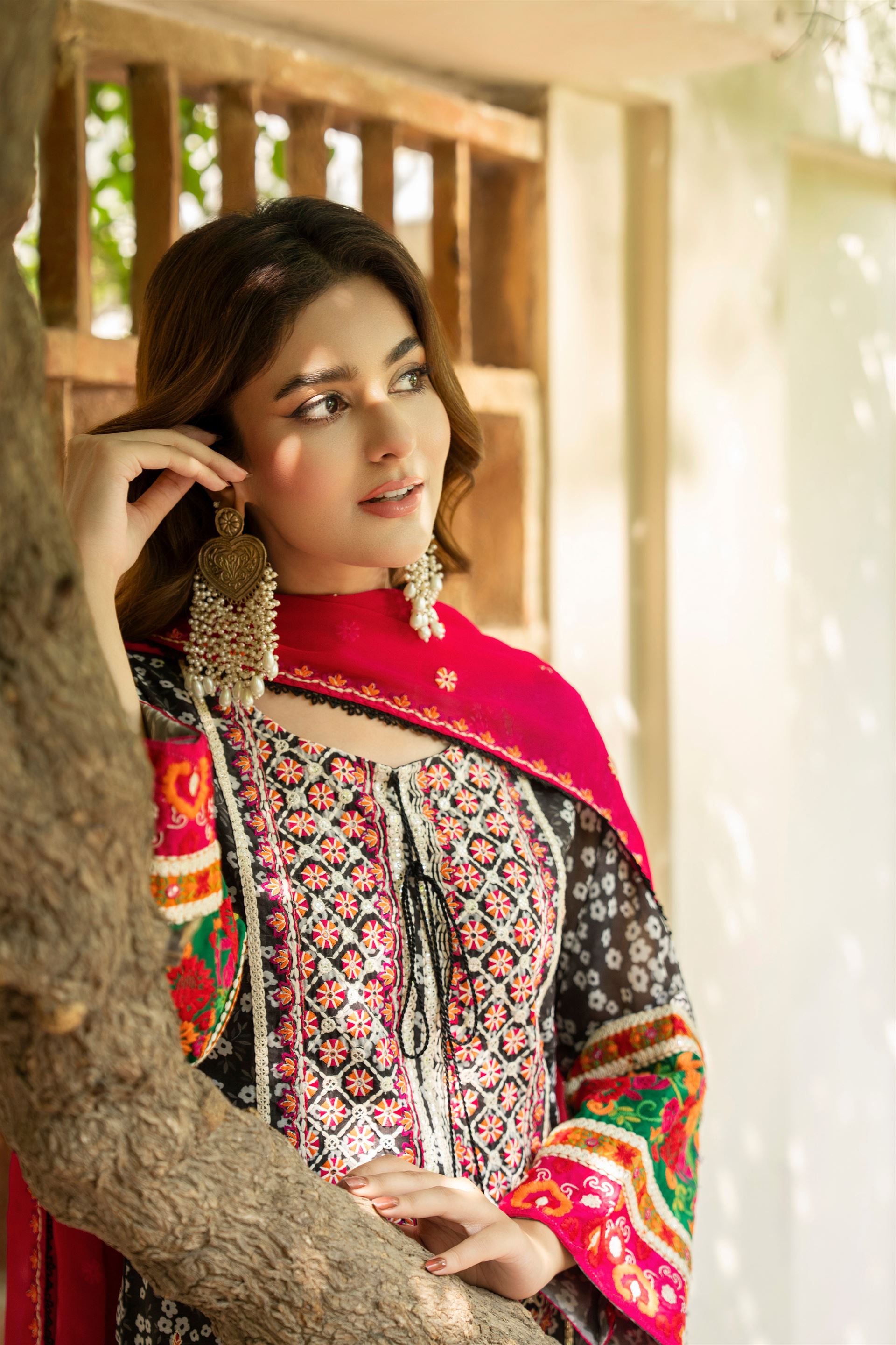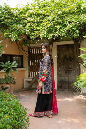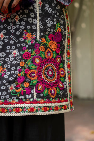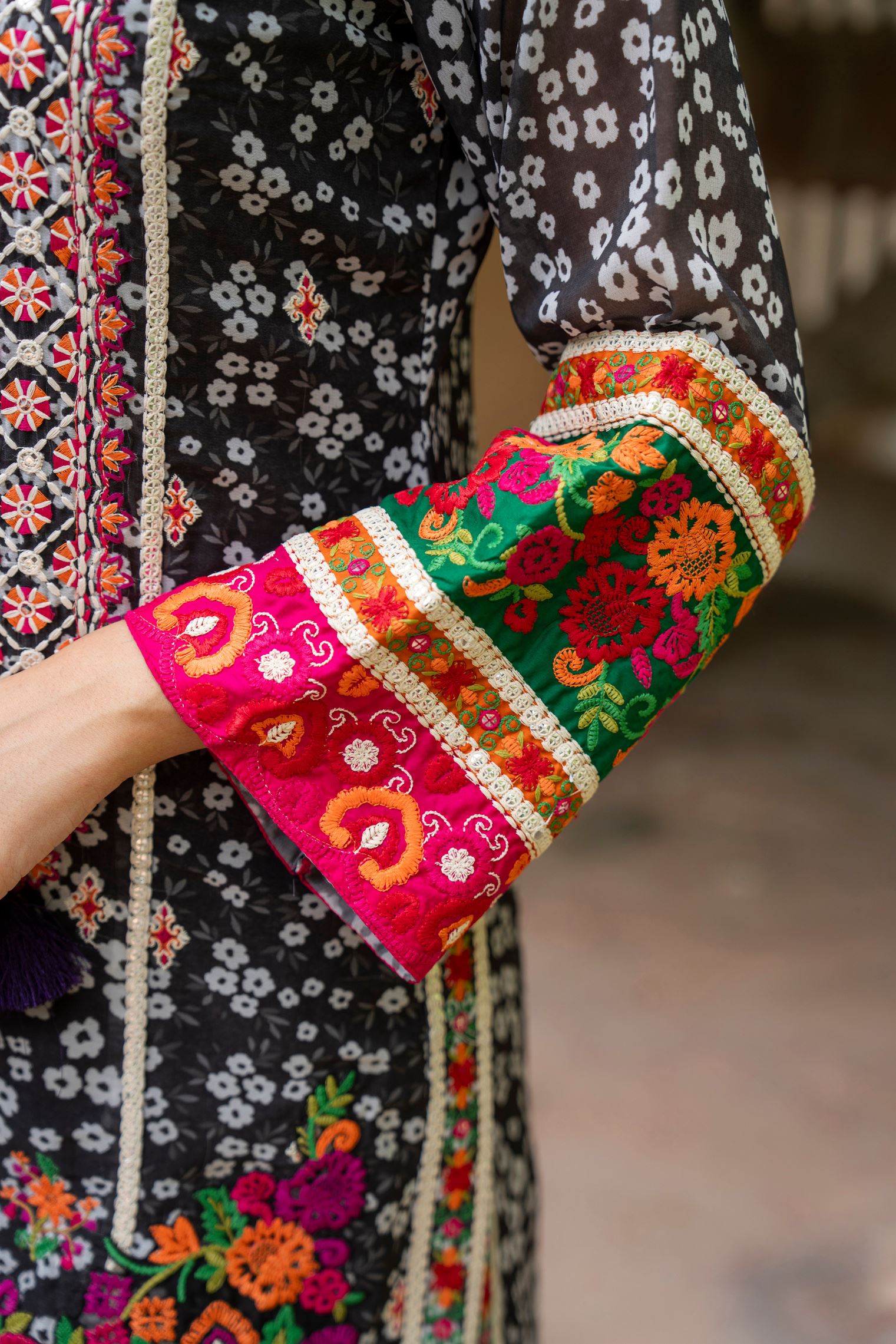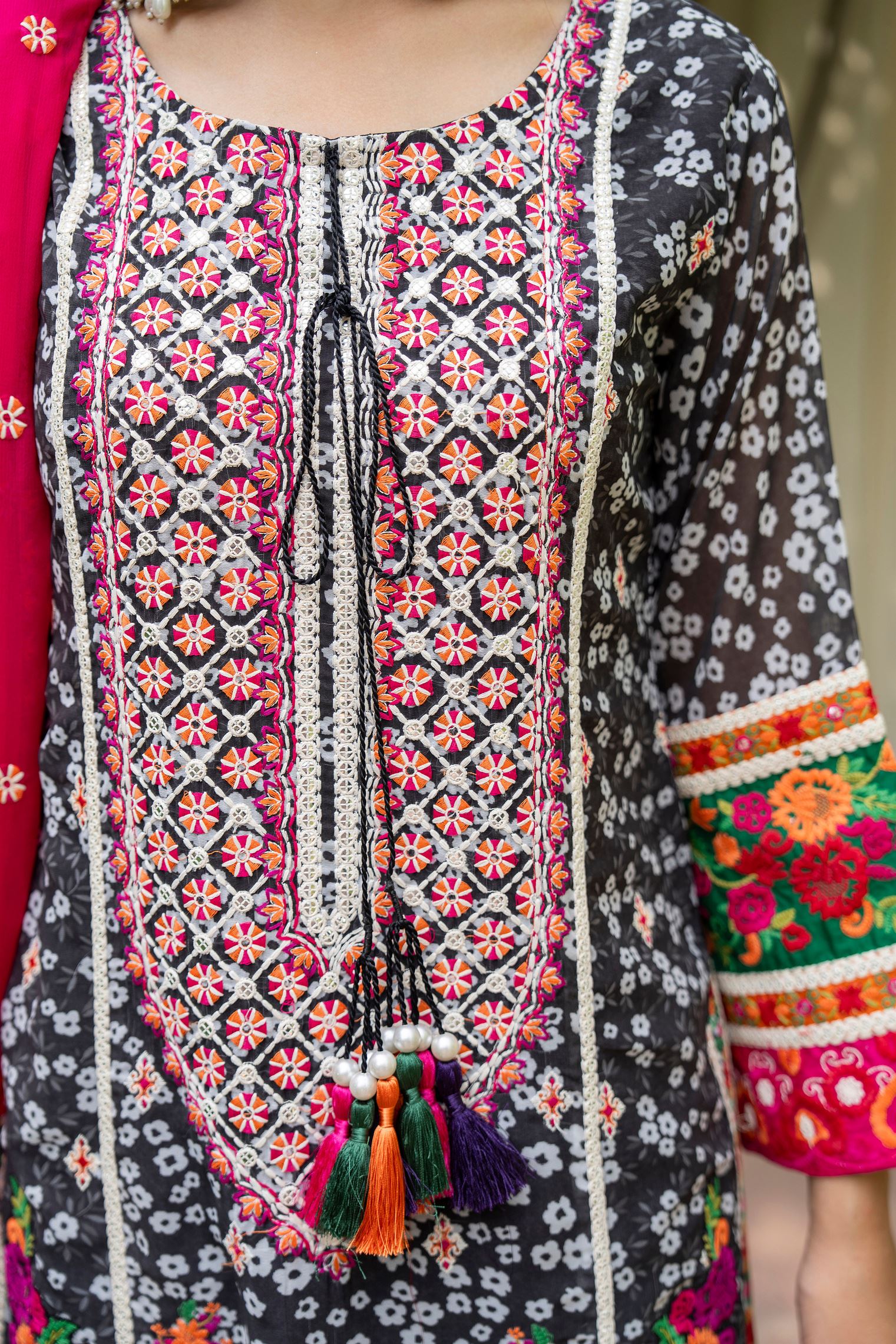 Printed Georgette Chiffon Shirt with Matte Thread work Embroidery