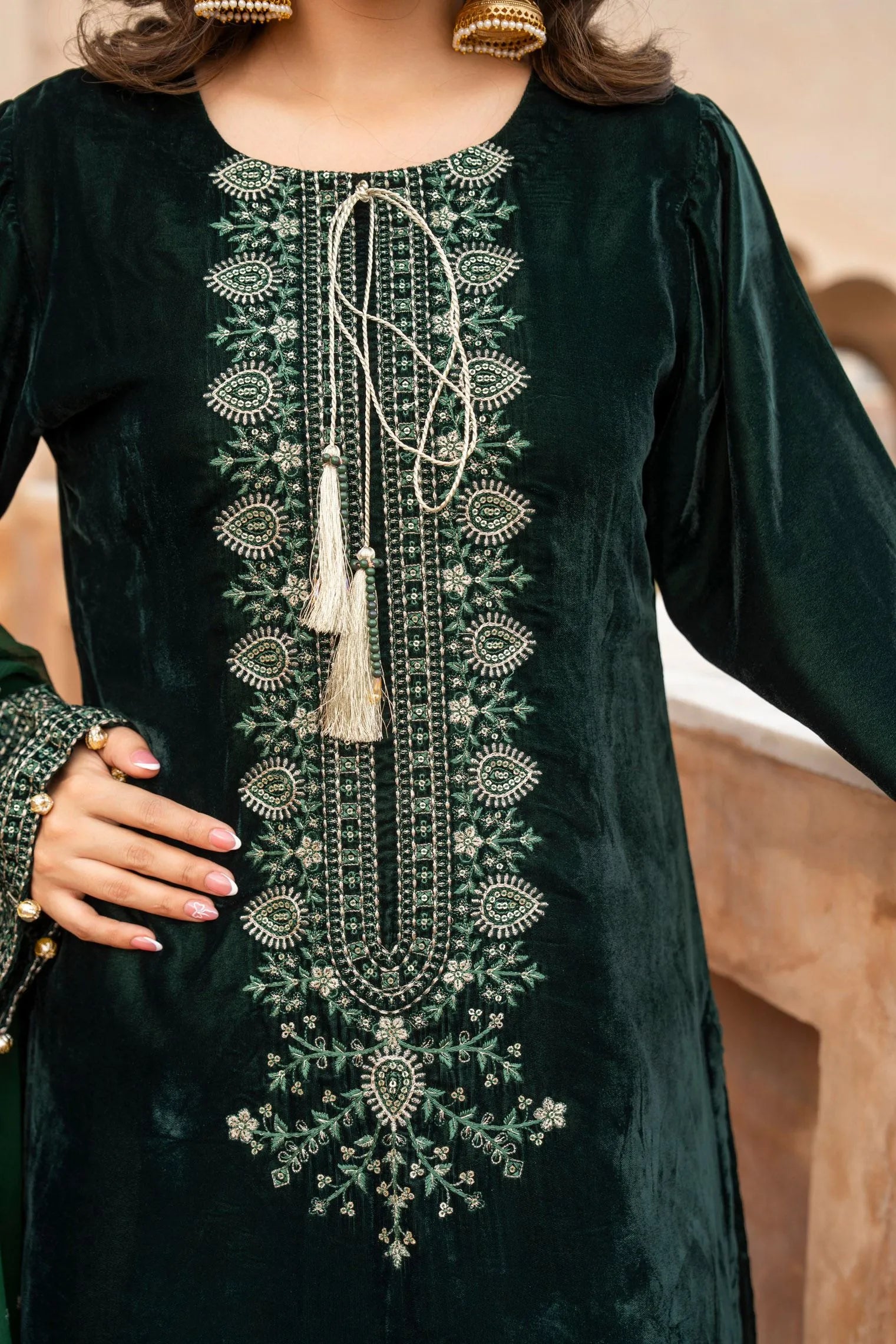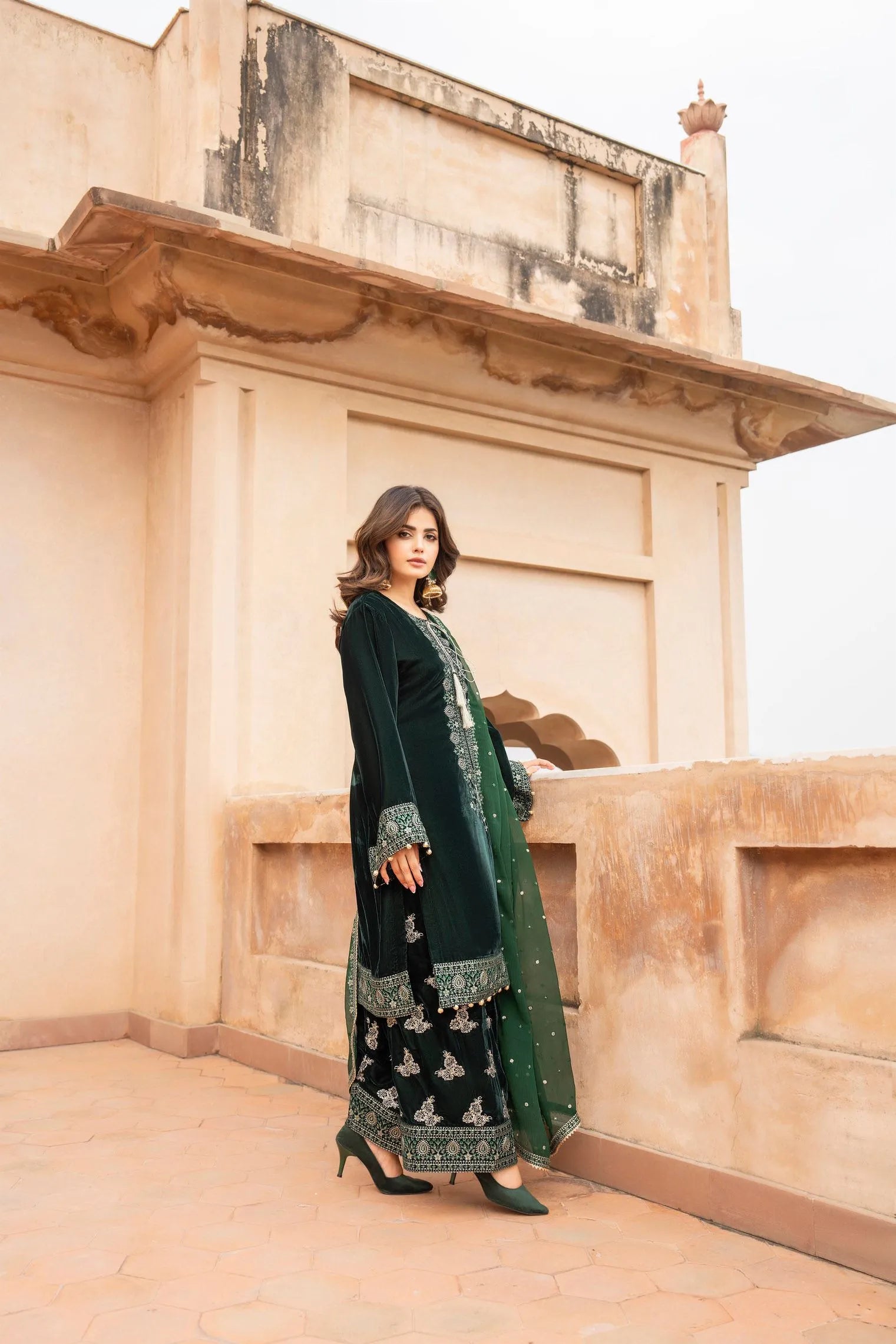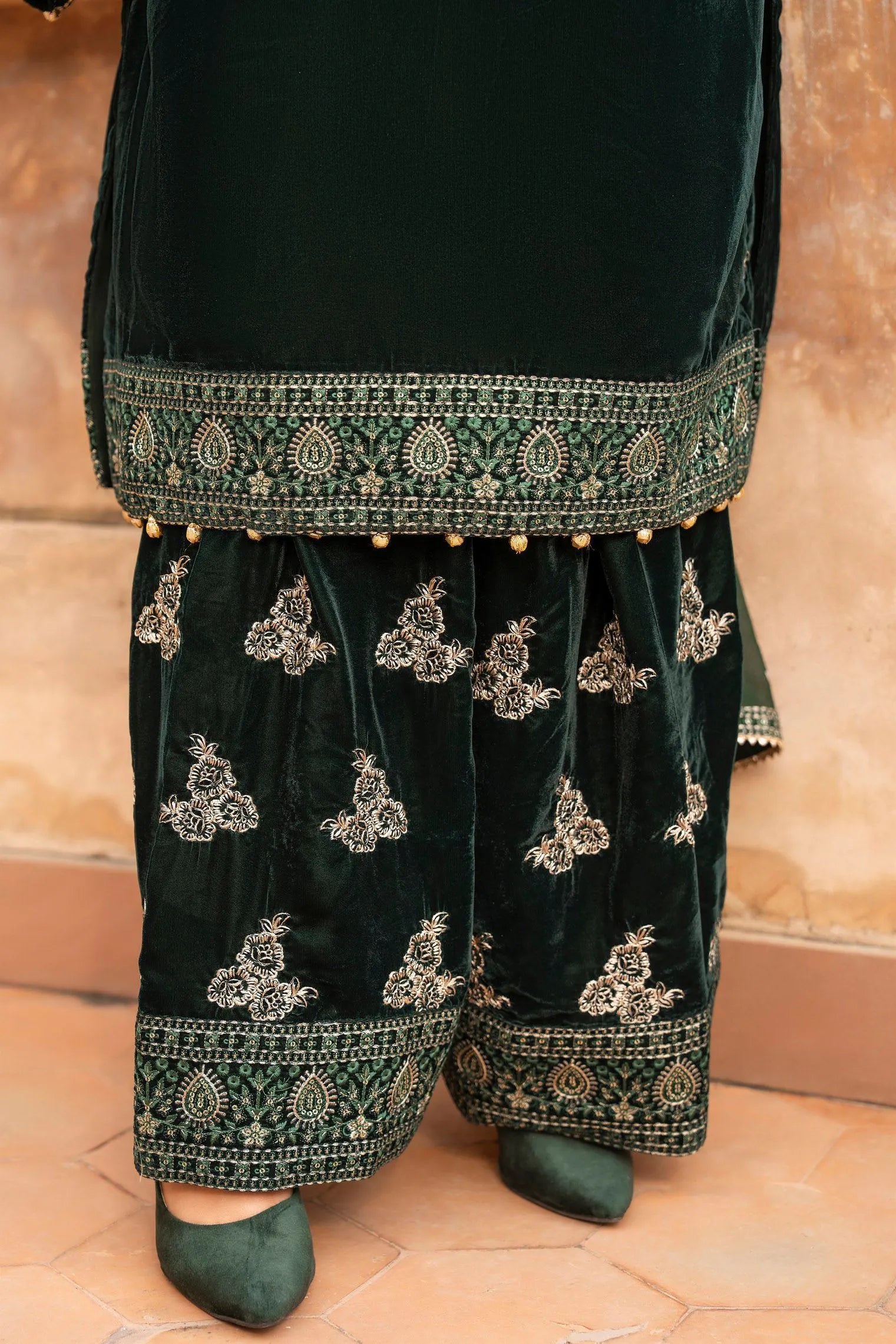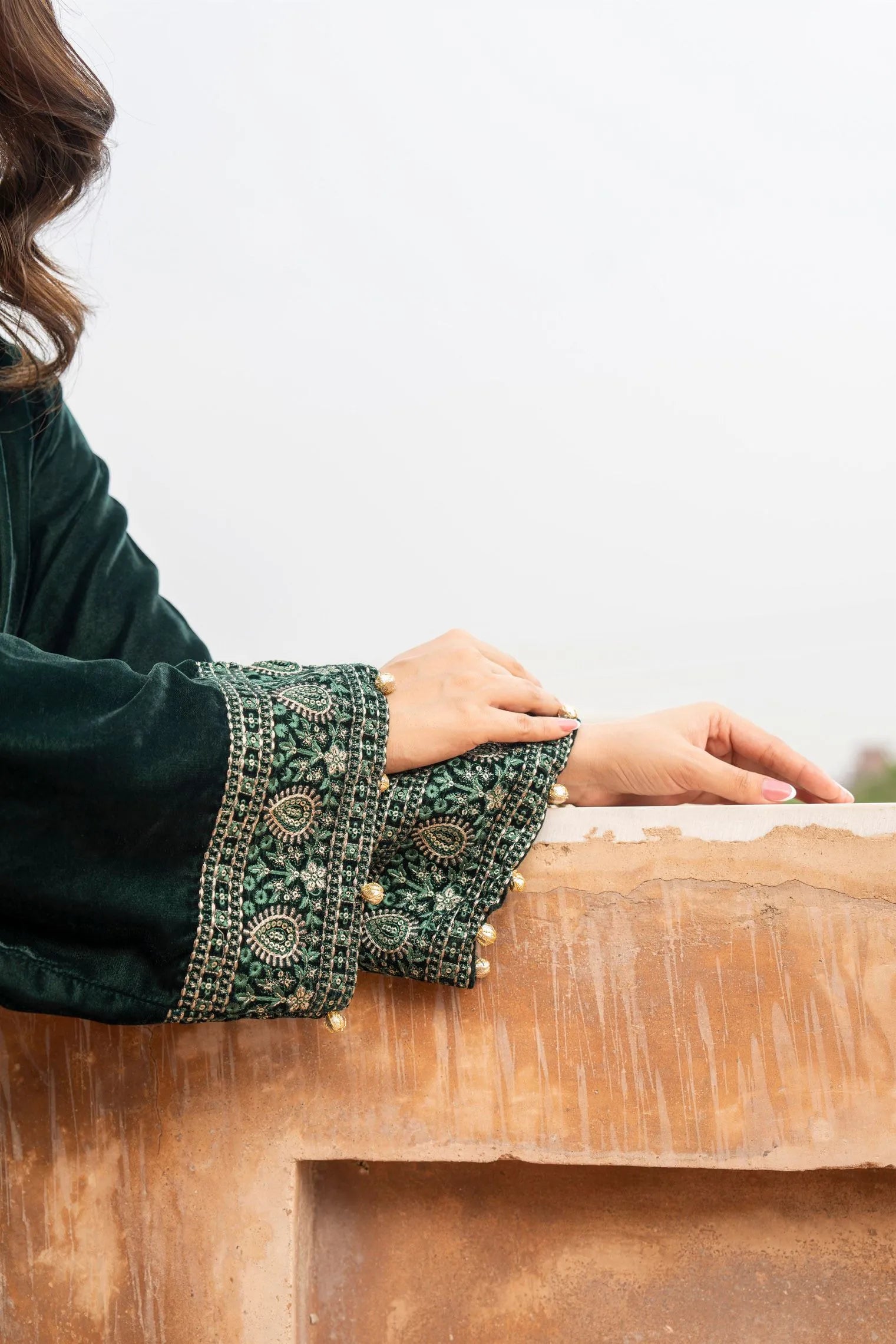 Embroidered Velvet Shirt with Multi Thread Work, Tilla and Sequence