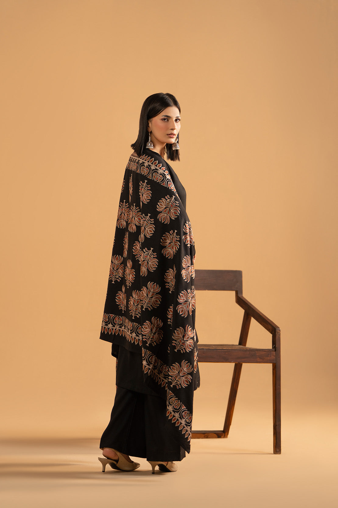 A beautifully fully embroidered shawl, adding grace, warmth, and a luxurious finishing touch.