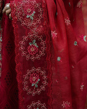 Elevate your Eid look with this vibrant red outfit that embodies cultural charm and contemporary fashion.