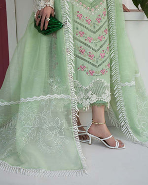 Embrace elegance with our Mint Green Lawn Suit this beautifully crafted ensemble features a refreshing mint green base adorned with delicate floral embroidery, exuding a soft and graceful charm for eid look.