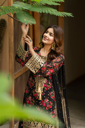 Printed Georgette Shirt with Sequence and Tilla work