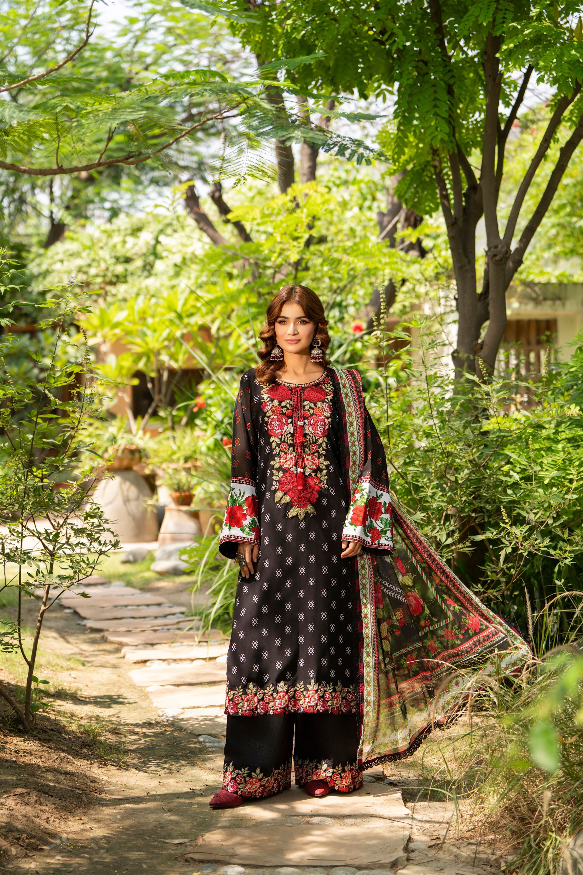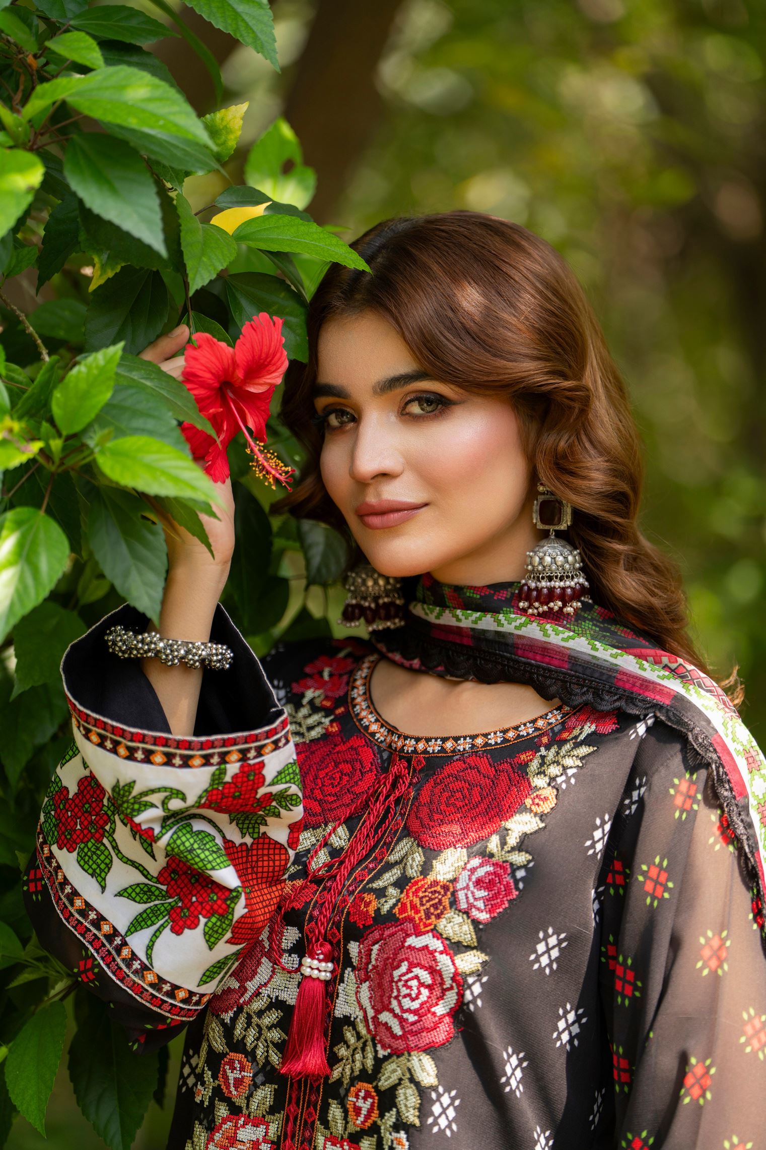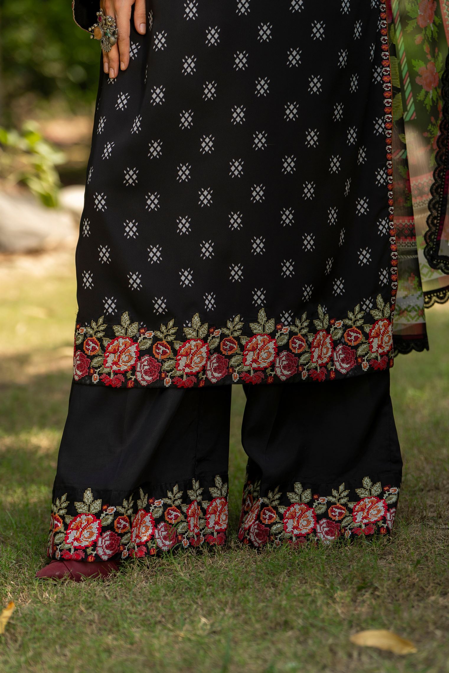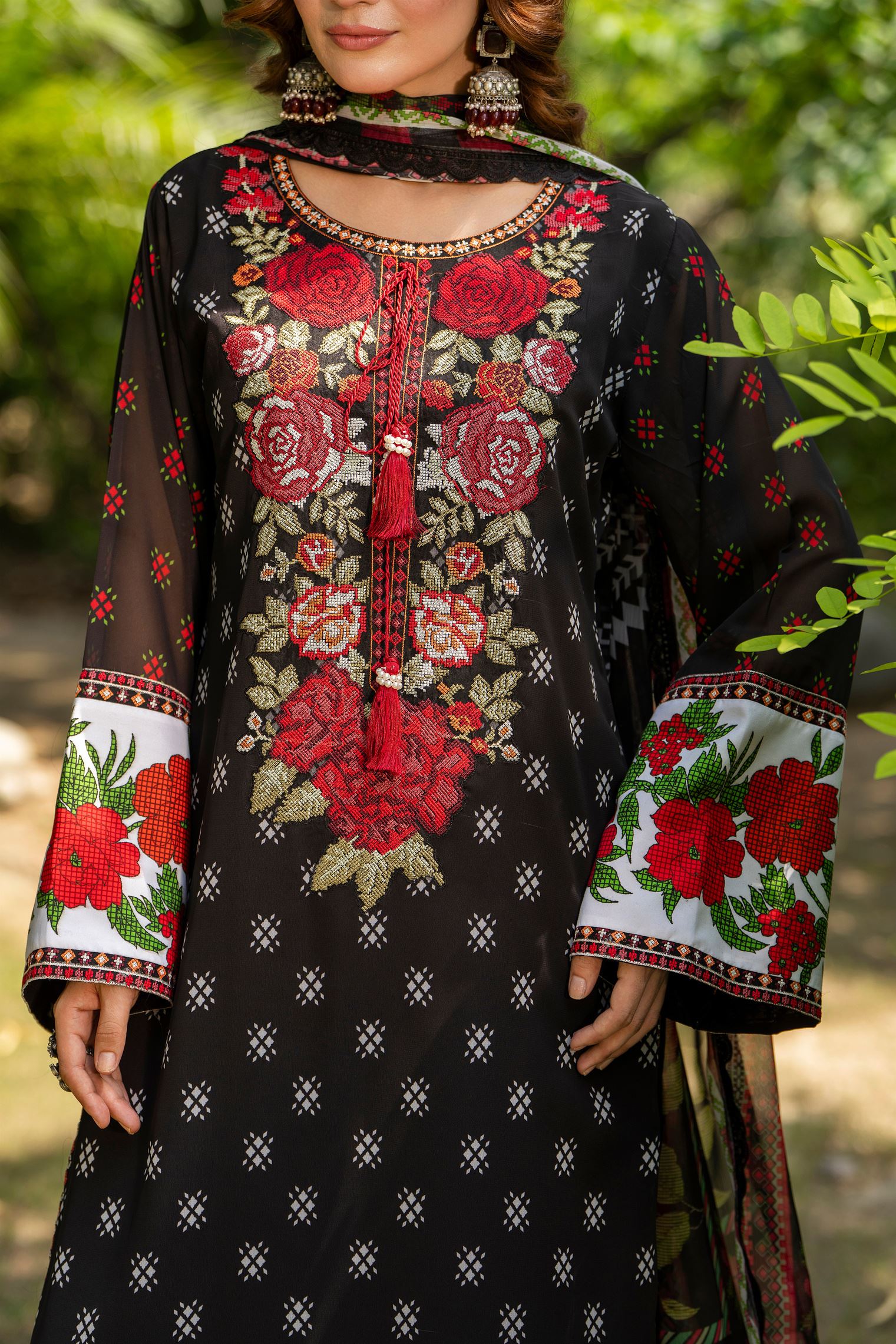 Printed Long Georgette Shirt with Cross Stitch Embroidery