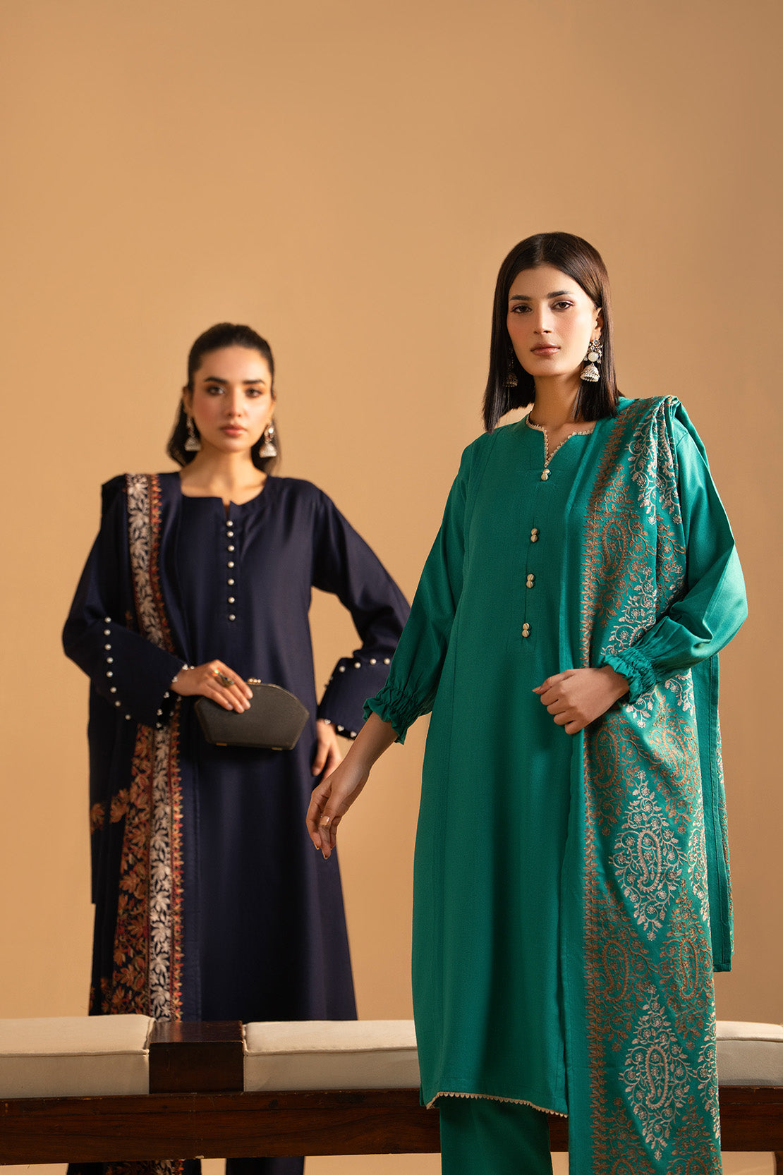 Stitched in soft, premium Dhanak fabric, designed with elegant detailing and a refined winter look.