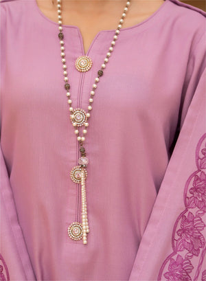 Shama-e-Husn glimmers like candlelight in a gathering — subtle, captivating, unforgettable. The ensemble features detailed motifs inspired by Mughal finesse, adorned on a canvas of deep hues. Every thread tells a tale of passion and poise, making it a perfect choice for those who shine without trying.