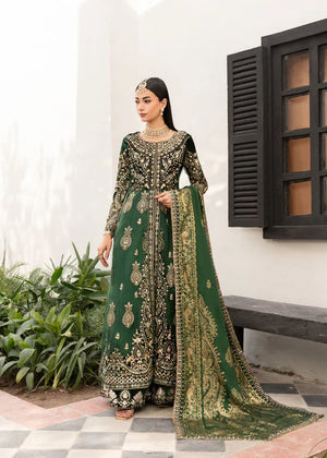 Step into timeless elegance with this exquisite three-piece ladies' ensemble, designed to make a statement. The outfit features an open long maxi-style shirt crafted from luxurious organza, offering a graceful and flowy silhouette. With a shirt length of 58–60 inches, it adds a dramatic flair perfect for formal occasions.