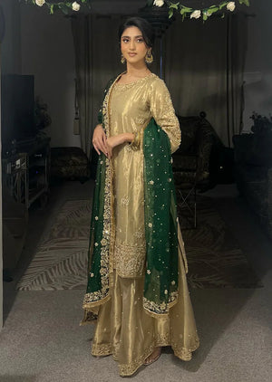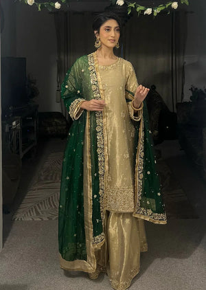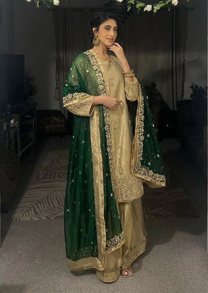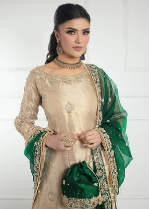 Experience the elegance of SRB1219 - Sherry's Designer! This stunning kameez is crafted from lightweight kota tissue fabric and adorned with intricate handwork embroideries. Paired with a flowy chiffon dupatta featuring a 4 side border, this ensemble is perfect for any occasion. Elevate your style and embrace luxury with Fozia!
