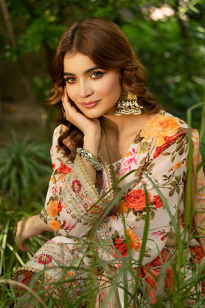 Printed Georgette Shirt with Multi Thread Embroidery and Tilla work